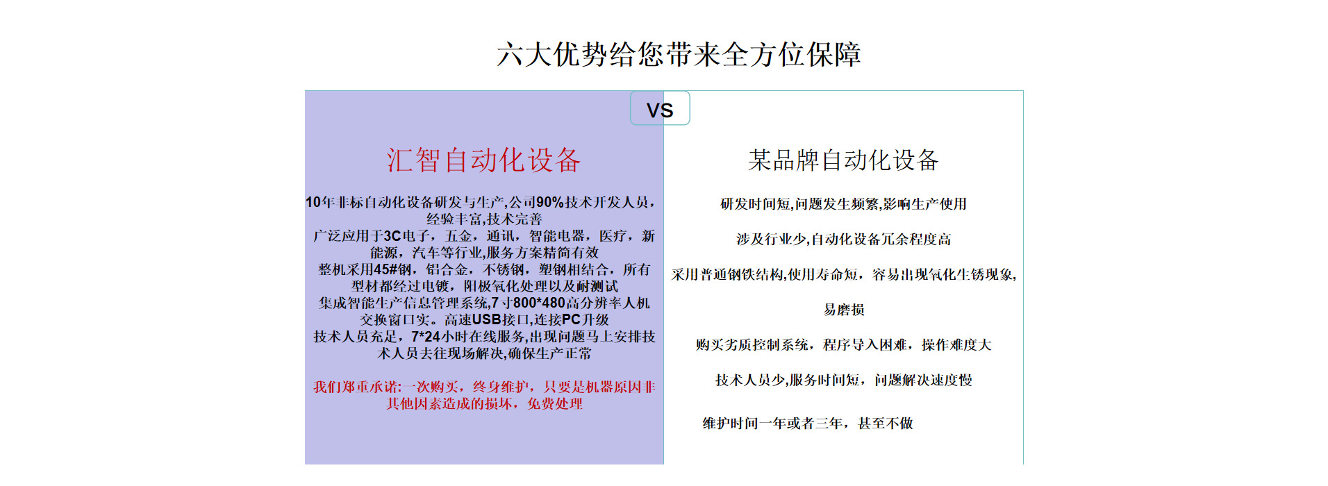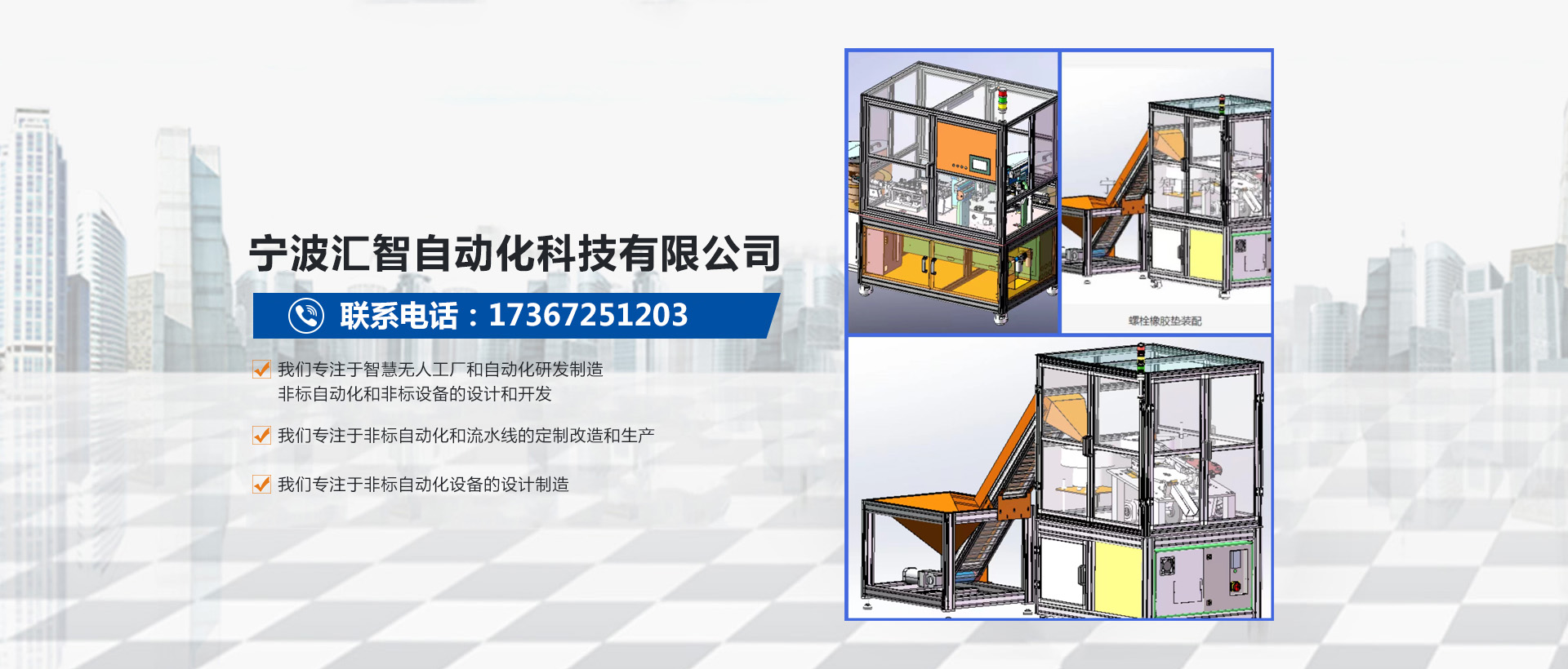 宁波汇智自动化科技有限公司是一家集设计、生产、销售和服务于一体的非标定制自动化组装设备供应商,有近十年的服务于自动化的行业经验,充分了解各个的产品工艺,一直致力于推广和普及自动化产品,提供可靠和成熟稳定的自动化设备,协助客户提高自动化工作的生产效率和自动化,从而把操作工的双手从简单、重复性和危险性的劳动中挣脱出来,让人可以做更有价值的工作。 公司拥有一批经验丰富的管理人才和可靠的技术人才,采用先进的质量管理体系,与国内外一些企业建立了长期友好的合作关系,产品远销欧美洲等发达地区,公司可提供从初期的产品工艺规划,工艺开发,设备选型,自动化配合和生产运作的整体技术支持,系统化的规划考量,可避免以往不同的设备和自动化厂商提作过程中信息不畅考虑不周的问题。…